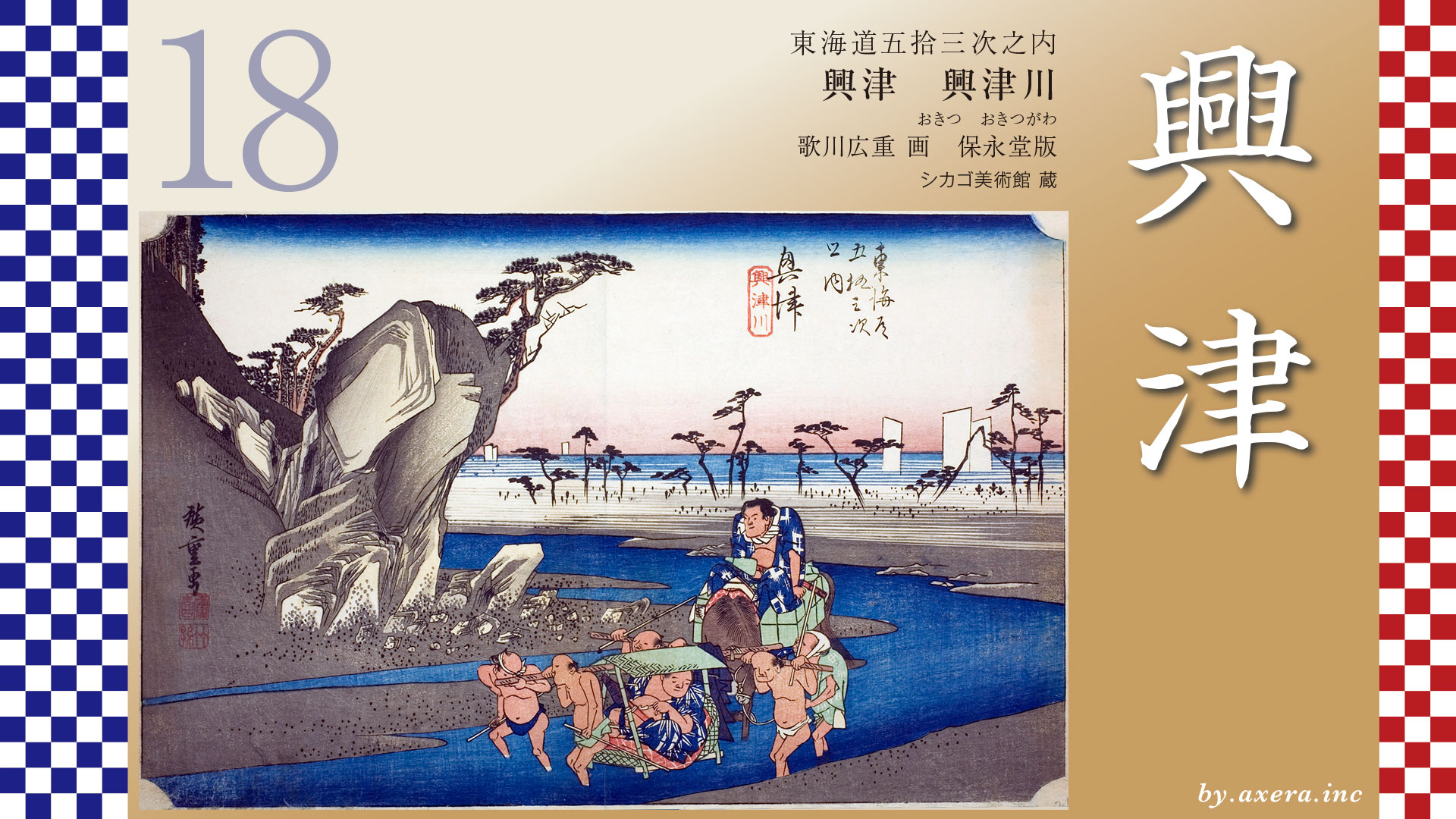 Let’s take a closer look at the Okitsu River depicted by Hiroshige.