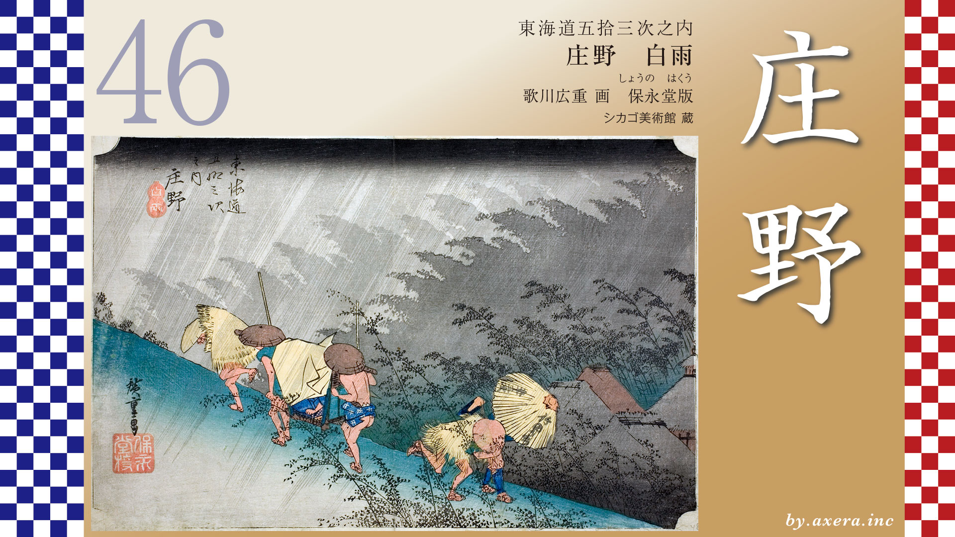 Among the relay stations along the Tokaido, it was one of the latest to be created.The distance between it and Ishiyakushi-juku is also the second shortest interval between relay stetions on the entire Tokaido.