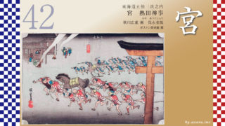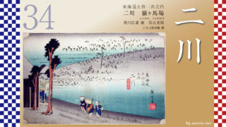 廣重が藤枝で、問屋場の光景を描いたということは、この当時の流通システムにかなりの敬意を払っていたようです。江戸時代の集落、特に城下町などでは、発展のために問屋場を設置し、やがてそこは街の中心となり、「伝馬町」と名付けられていきました。廣重のこのシリーズの、「五拾三次」も、53ヶ所の取り次ぎという意味ですから、宿場は単なる宿が密集する集落という意味ではなく、人とものが流通する駅だったんですね。